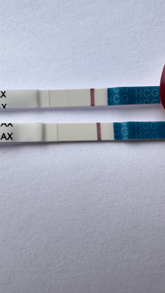 Верхний сегодня, нижний вчера. У вас были такие тесты в беременность? Или это реагент?