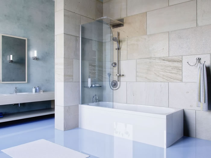 у нас стеклянная, очень довольны. Она с одной стороны из рефленого стекла, с другой (внутренняя) - гладкая, брызки отмываю хлоркой, редко мою, т.к. особо грязь к себе не притягивает и все время сложенная.