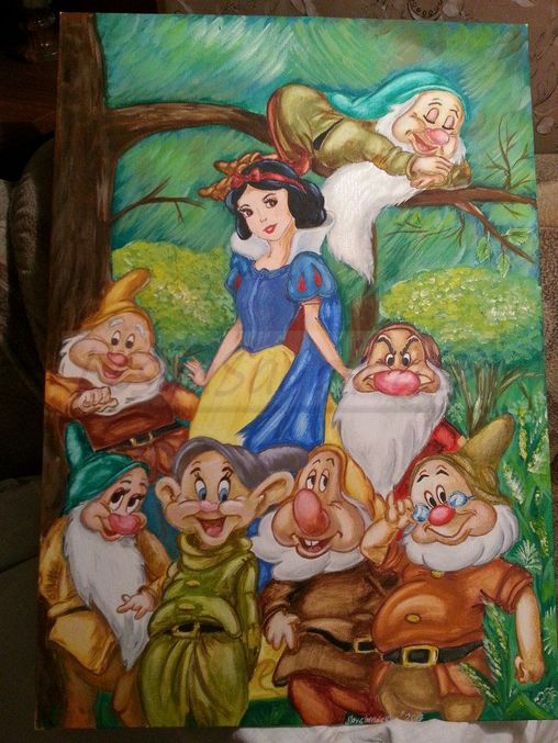 Белоснежка и семь гномов. Темпера.