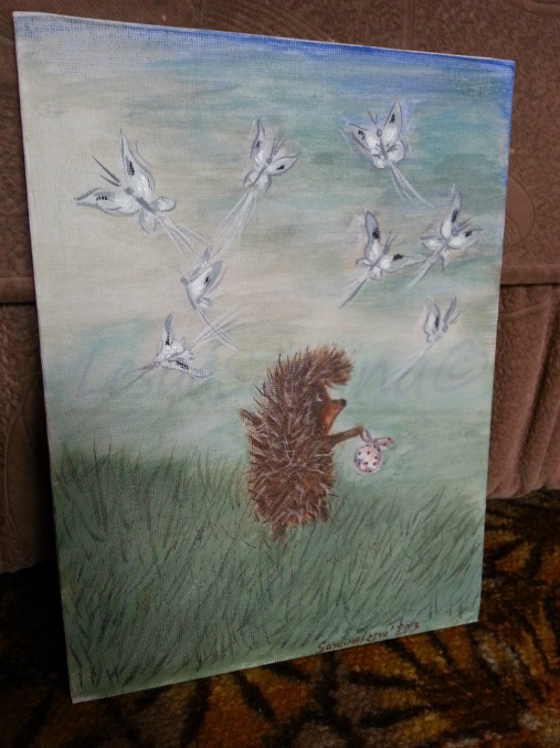 Ёжик в тумане. Бабочки. Темпера. Продана. Возможен повтор на заказ
