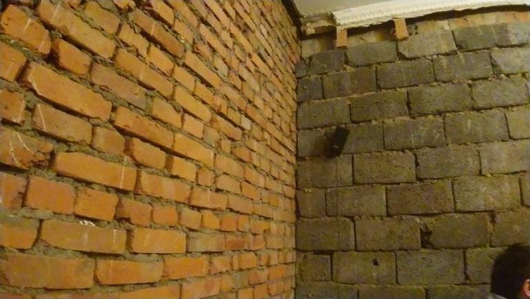 Две стены к соседу: одна кирпичная, вторая керамзитобетонные блоки. В планах было это заштукатурить, но после увиденного энтузиазм как-то пропал и грянула новость о реновации.