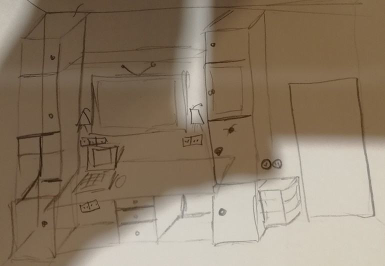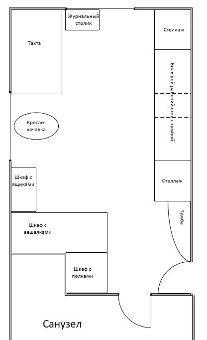 И, если в кроватью и шкафами все понятно, то правую стену я нарисовала для пояснения: