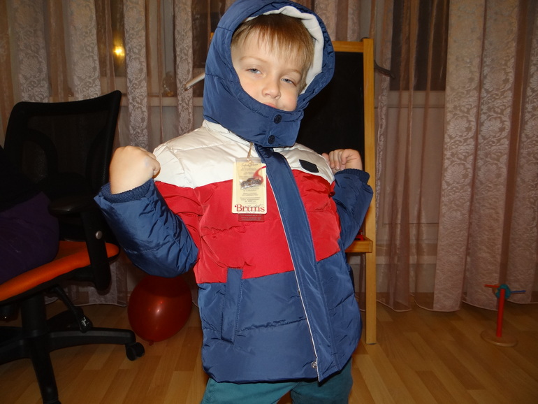 Так же для старшего куртка на пуху размер 5А, надо было взять всё таки 6А, но на сейчас как раз хватит! Цвет супер - супер...она стоит своих денег, по качеству очень-очень ХОРОША!!!!