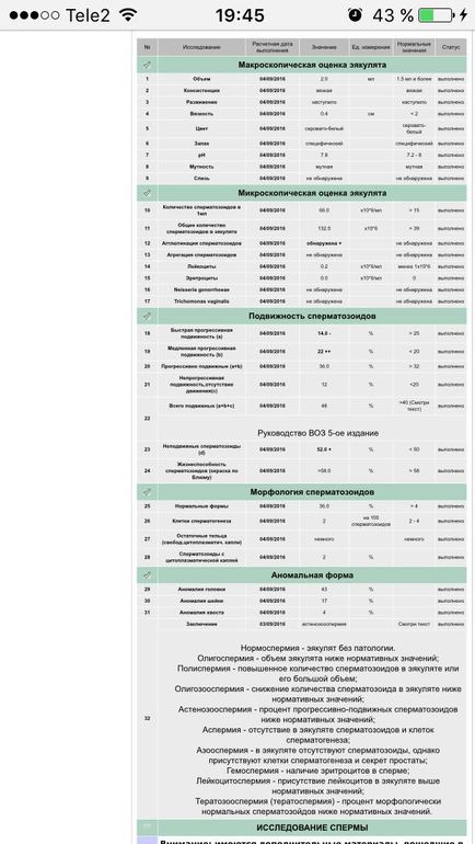 девочки, помогите! 8 месяцев не может зачать ребёночка((( муж сделал спермограмму. Я начиталась про его результаты, уже голова кругом! Андролог у нас нет. Может кто понимает в результатах этих что-то? Сможем ли мы зачать ребёнка естественным путём? Качество не очень фото. Агглюканизация+, А 14%, В 22%, С 12%. Всего живых 48%. Нормальных по морфологии 36%