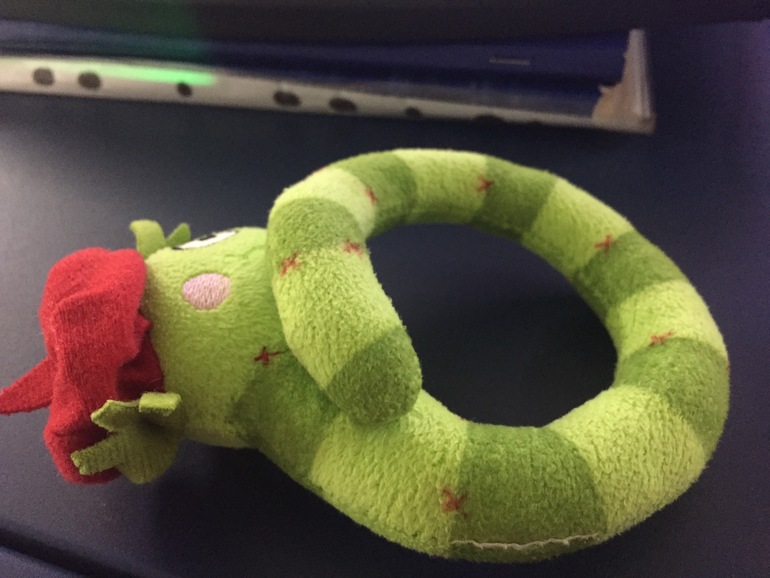 Я нашла игрушку на рабочем месте, там же и оставила её, домой не забирала)