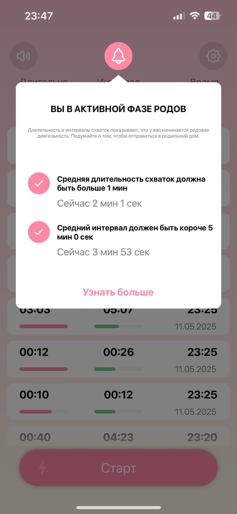 Лидия, последняя «схватка» была в 2:43, пока затишье, зато потягивает спину и по-моему тревожит почка правая