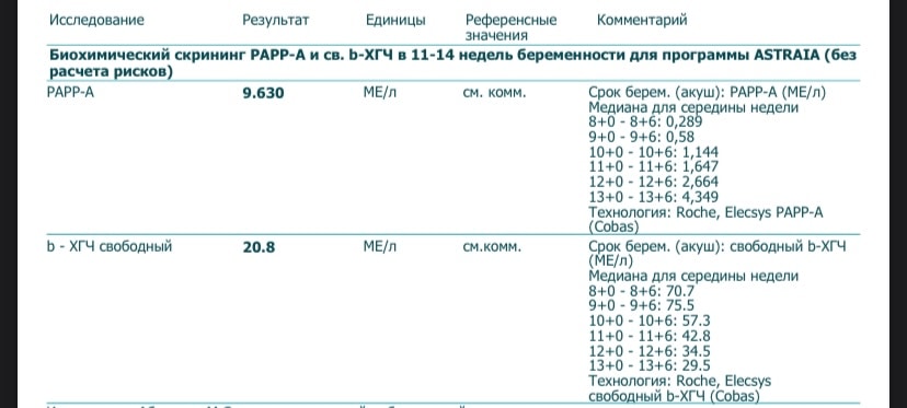 Эти результаты ни о чем не говорят без скрининга. На основе этих данных, плюс ваш возраст, вес, раса, данные узи (ктр, твп, кость носа) строится риск хромосомных аномалий.