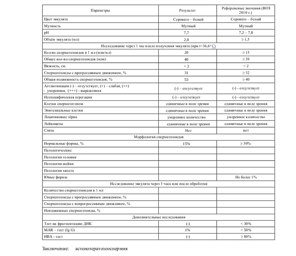 Мужское здоровье, СпермограммаЯ запуталась,показатели вроде в норме, а в заключении астенотератозооспермия(мужское бесплодие)