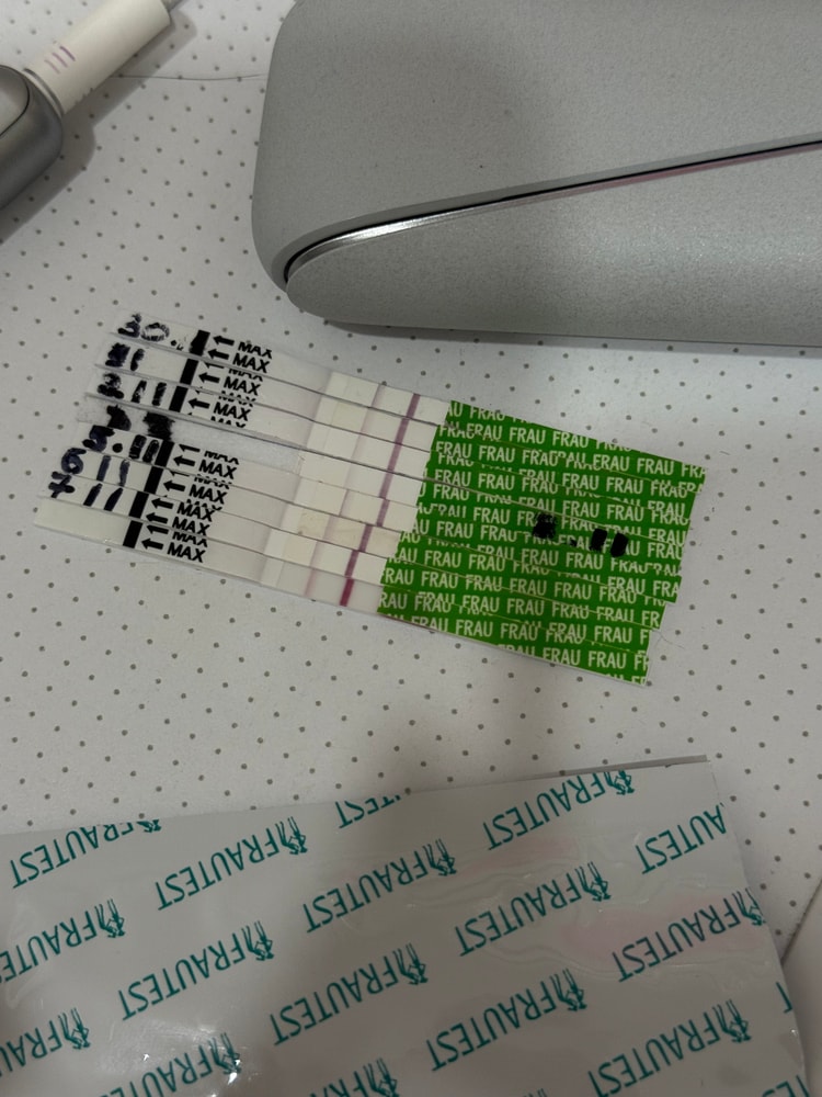 30.10 сделала последний тест и хотела выкинуть, но ради интереса сделала 31 числа , полоски стали светлее, 2 и 3 ноября уже прям светлые, думаю все, кончилась овуляция , жду либо б либо месячные