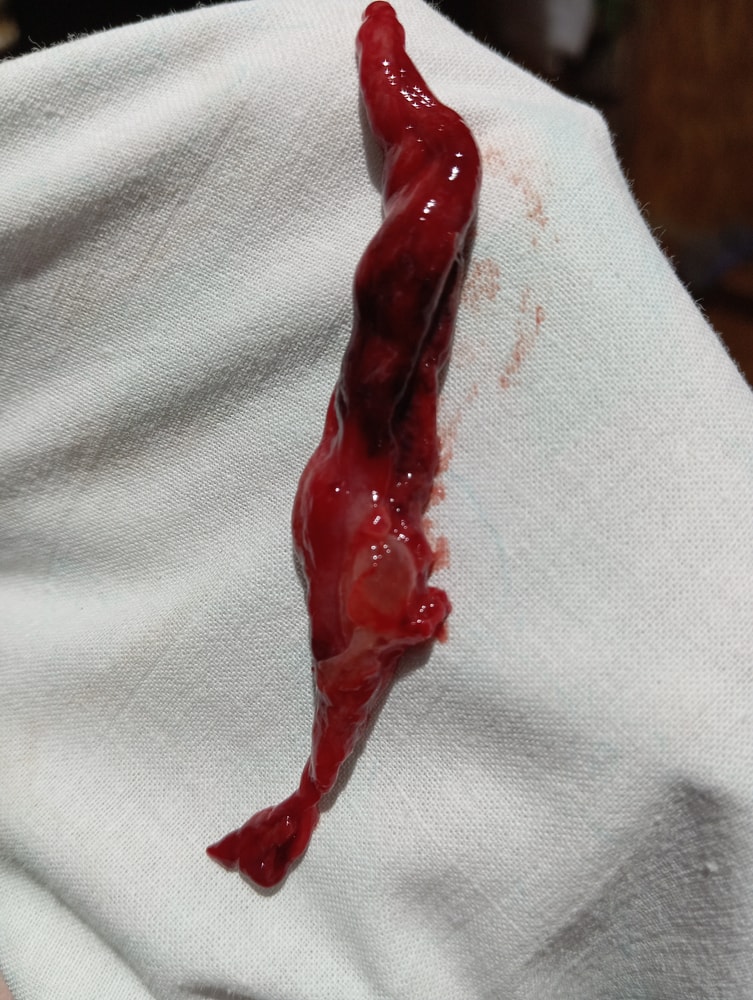Я такой мешочек расковыряла, нашла прозрачный мешочек размером с фасолину. В нем была прозрачная водичка и почти прозрачная креветочка размером 3мм. Тк вышел целый мешочек, не ошмётки, то в матке было пусто, чисто