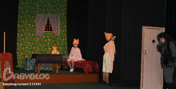 После представления "Три поросёнка" в хол пригласили всех для продолжения с участием гостей.