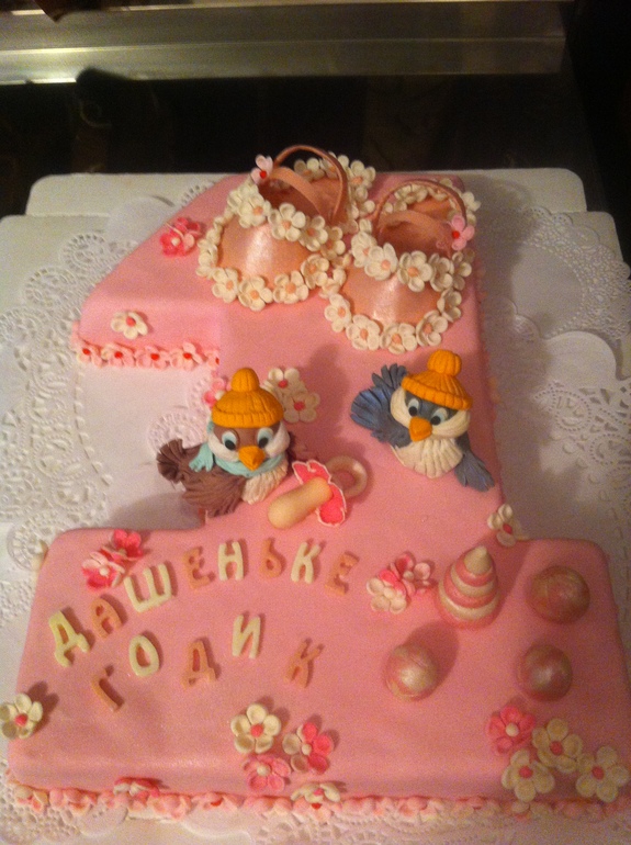 Детский тортик. Наполеон. Множество тонких коржей, домашний заварной крем с натуральным маслом, натуральная стручковая ваниль. Надпись, пинетки, пирамидки и мячики из шоколада. Воробушки тоже съедобные. Вес 2,300 кг.