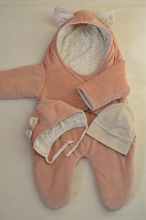 Уникальный комплект, второго такого вы не найдете, ручная работа. Удобный и нежнейший утепленный комбинезон-конверт для девочки выполнен из велюра, подклад интерлок 100% хлопок, внутри утеплитель Альполюкс. Отличный вариант как для выписки из роддома, так и для дальнейших прогулок с малышом в прохладное время года. Также очень удобно использовать в поездках, в автокресле. Совсем маленького малыша можно укутывать без ручек, как в конверте, побольше - с использованием рукавов, комбинезон-конверт удобен в использовании, можно легко и быстро собрать малыша на прогулку. В комплекте утепленная шапочка,украшенная бантиком, а также трикотажная шапочка. Дополнительно можно заказать слип, велюровый комбинезон на подкладе. Подходит на сезон весна-холодное лето!