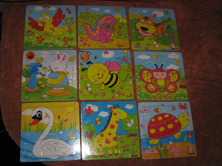 15. Пазлы детские деревянные - толстая фанерка и сверху наклеена бумажка с картинкой (я поначалу думала, что это отпечатано красками прямо по дереву)))