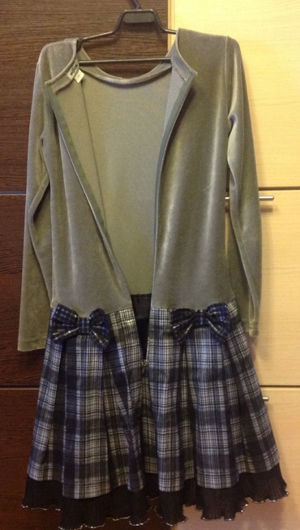 Продам платье фирма Войчик рост 146, что называется и "в пир и в мир", в отличном состоянии после одного ребенка. Серый бархат, юбка на подкладе, заниженная талия, молния на спинке до попы. Подходят любые украшения, продаю без них. 500 руб.