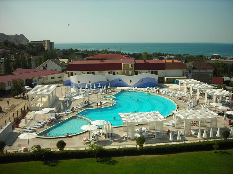 База Отдыха " Прибой ", Феодосия, поселок Береговое. Отель так же находится на охраняемой территории, на второй линии, пляж через дорогу, в 400м от отеля. Рядом с базой отдыха магазины, рестораны, кафе. Отель работает на все включено, алкоголь за доп. плату. На территории имеется мангал с шампурами, библиотека, медпункт, открытый бассейн, настольный теннис, спортивные площадки, пенные вечеринки. Для маленьких гостей детская площадка, игровая комната, анимация, няня за доп плату, игровые автоматы. Так же на территории имеется кухня для собственного приготовления еды.