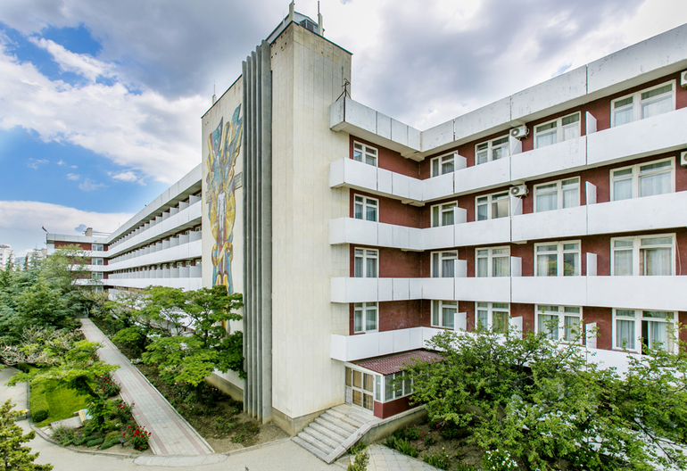 Пансионат " Звездный", Крым, Судак. Территория у пансионата хорошая, охраняемая. В 500м от пляжа по кипарисовой аллее. Рядом аквапарк. На территории бассейн, теннисный корт, бильярд, медпункт, кабинет стоматологии, массажиста, интернет кафе. Для маленьких гостей детская комната, площадка. Питание в пансионате 3х разовое. Номера все с удобствами и кондиционером.