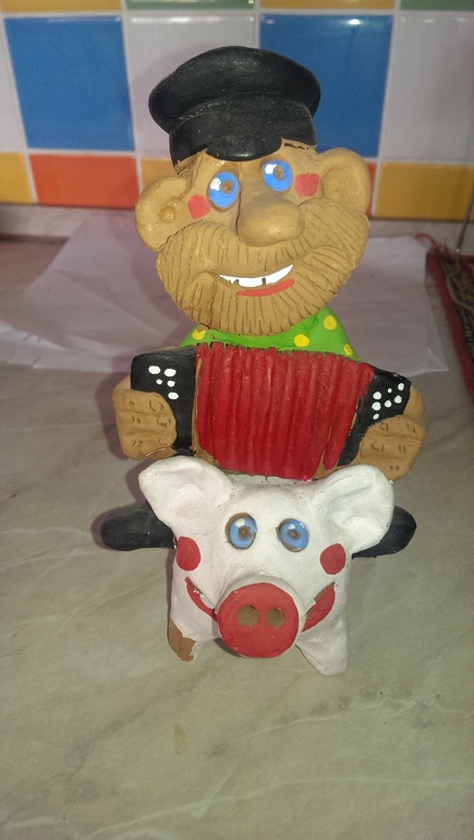 - Фигурки, гармонист на свинье кое-где потрескался