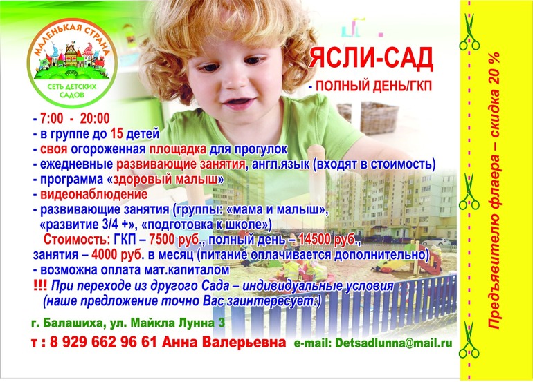 Детские садыМамочки,приглашаем малышей с 1,5 лет в наши Ясли, разные графики посещения , возможность водить на Полный день, своя огороженная современная площадка, видеонаблюдение , масса развивающих занятий, уже входят в стоимость , звоните ! С мая 1 место появилось