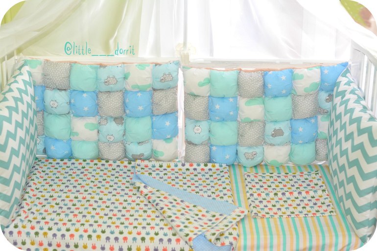 Прекрасные бортики в кроватку, гнёздышки, прелестные одеялки, конверты-трансформеры, игрушки-сплюшки, гирлянды из букв, буквы-подушки, текстильный декор... Фантазия не ограничена) Огромный выбор расцветок, отличное качество! ![]()