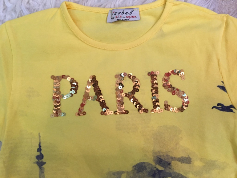 Футболка "PARIS", новая.Вышита пайетками. на рост128-134см. Цена 350 руб.