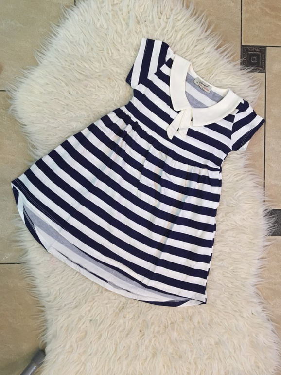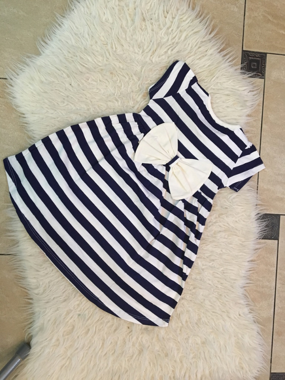 Платье новое, на рост110-116см. Полоски т. Синие, сзади бант. Турция! Цена 400 руб.