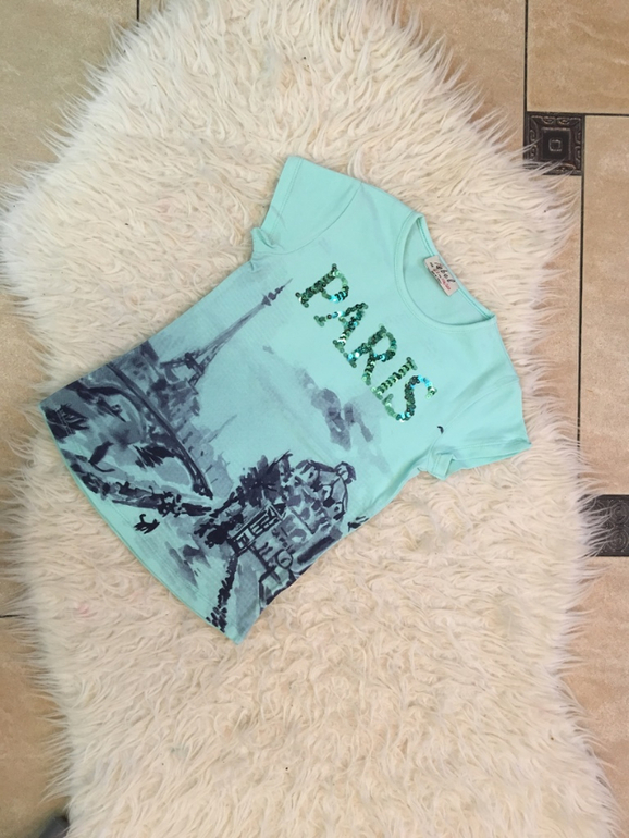 Футболка "PARIS", новая.Вышита пайетками. на рост 110-116 см. Цена 350 руб.
