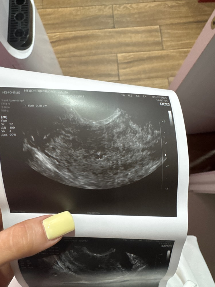 Обследования, узи, анализы1д.м был 06.06, сейчас уже 35 д.ц.Была на узи(до этого делала узи в июне,была фолликулярная киста в п.я ,сейчас уменьшилась ,в л.я был доминантный ,сейчас там желтое тело ) эндометрий 10мм нашли точечку 2 мм,сделала тест на одном в клинике 3 врача увидели небольшую полоску (я-ничего) ,напилась воды сделала цифровой,ничего(скорее всего из-за большого количества воды)неделю назад тянуло живот ,думала придут эти дни,но что-то пошло не так
