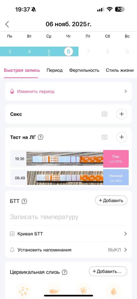 ОвуляцияДавно тут не писала, мы ссорились постоянно и почти не было с. Но после моего др 15.10 начало налаживаться, я начала пить прегнотон, муж пьет именно мужские витамины ( не для зачатия), и витамин д. Цикл вроде встал в норму после отмены инозита. И в начале ноября я поняла, что надо бы по ощущениям сделать тест на О, они лежали еще с сентября. Сделала и ничего, но через пару дней выделен*я точь в точь как Яб, но полоска не яркая, через день стала яркой. Фото прилагаю. Ждем дня Х.