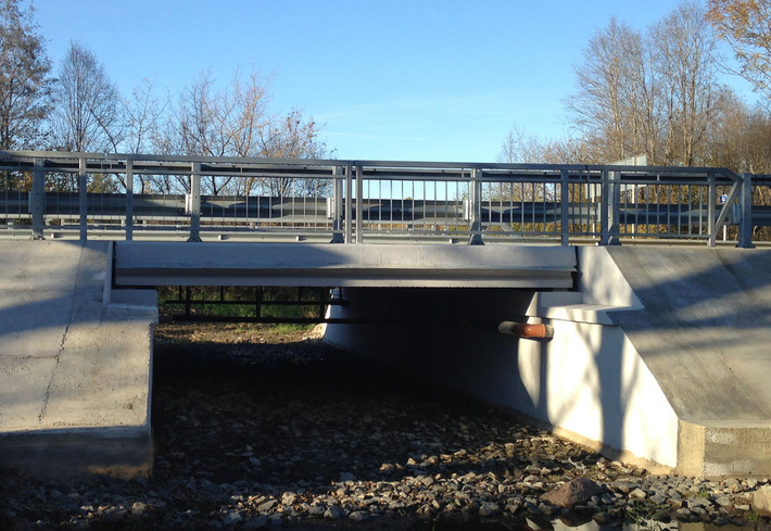 В Псковской области на автодороге А-212 Псков - Изборск - граница с Эстонской Республикой при капремонте мостов через реку Красная репка (км 18) и Вруда (км 55), а также на мосту через ручей на 159-м км автодороги Р-56 Великий Новгород-Псков выполнялся комплекс работ по замене пролетных строений и опорных частей, наращиванию и ремонту опор, по устройству нового асфальтобетонного покрытия и деформационных швов, а также замене барьерного и перильного ограждений.