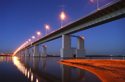 6. Мост через Каму, Архаровку и Курлянку - протяженность над Камой 1608 метров, общая протяженность 13967 метров, открыт в 2002 году