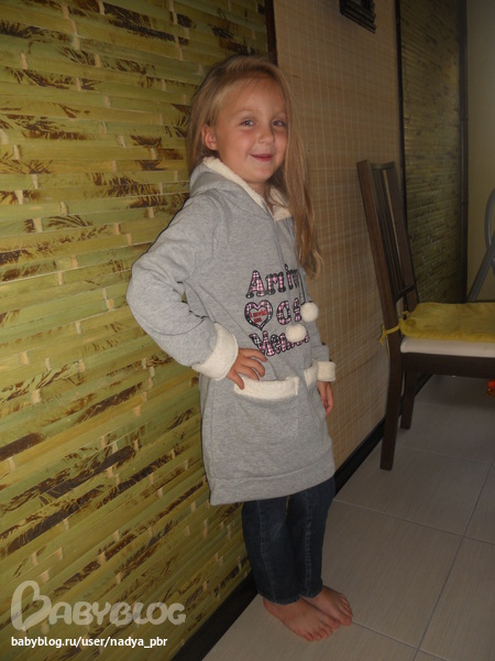 Кардиган на 130 - впритык....Худи порадовало)) теплое, мягкое..брала 140 на вырост, поэтому рукава подвернуты и сидит немного мешковато...