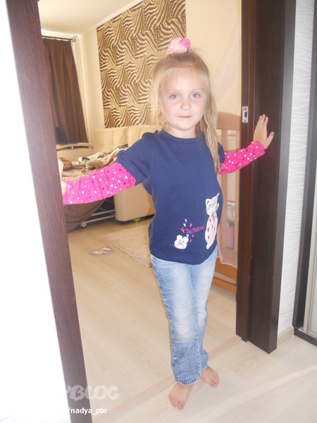 Теплый Гэп (который пришел вместо тройки) очень даже классненький) теплющий.. Вельветки 130 (подвернуты внутрь,там еще см 10 наверное))), толстовка Китти тоже великовата 130рост