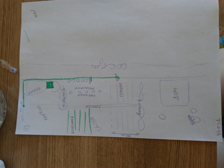ОгородЗдравствуйте, девочки, может у кого появится мысль, буду благодарна. Купили участок, очень вытянутый, 10*70 м. Посадила огород и немного саженцев, кое что было. Встал вопрос, куда лучше клубнику высадить. Слева ,где надпись клубника(там склон небольшой,хотела его занять клубникой, потому что овощи на склоне не оч удобно,на фото) или справа где грядки, здесь ровное место. Но на ровном месте хотела именно огород садить постоянно. Либо если здесь клубника, то потом помидоры и перец на склоне сажать...Но есть нюанс- осенью нужно будет поднять наверх ёмкость под воду, железную, всю голову сломала как лучше.