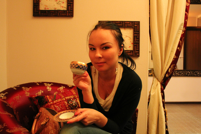 Сначала мы расположились в уютной зоне отдыха, где умиротворённо пахло благовониями...
