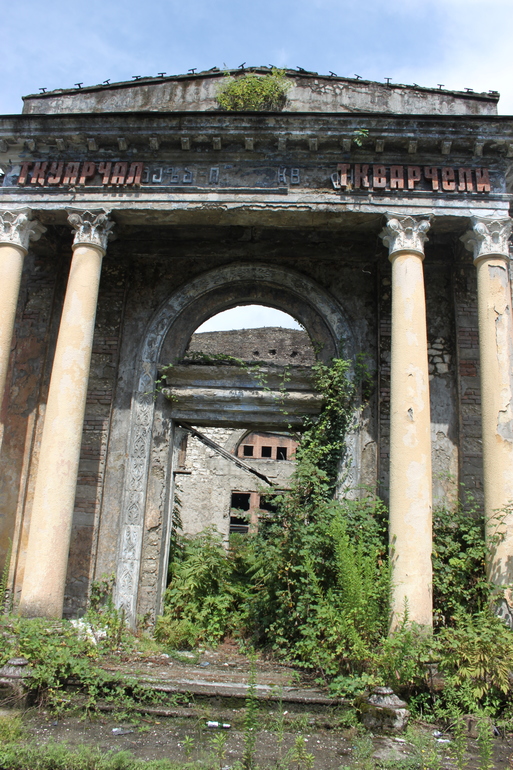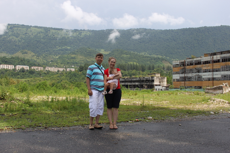 Город-герой Ткуарчал...За нашими спинами полуразрушенные дома и заводы