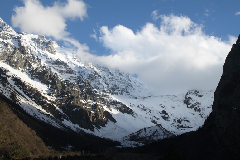 А уже через пару дней мы утренним автобусом отправились в альплагерь "Цей", который находится в Цейском ущелье. Май - это межсезонье для местных курортов, так что мы оказались единственными туристами. Сервис достаточно прост, зайдя в комнату, сразу вспомнила пионерский лагерь из детства. Питание тоже без изысков, но вкусно. Нас отсутствием благ не напугать, сразу знали, куда ехали. В горы!.. Таких гор я не видела и ещё во Владикавказе мне всё время казалось, что это фотообои.