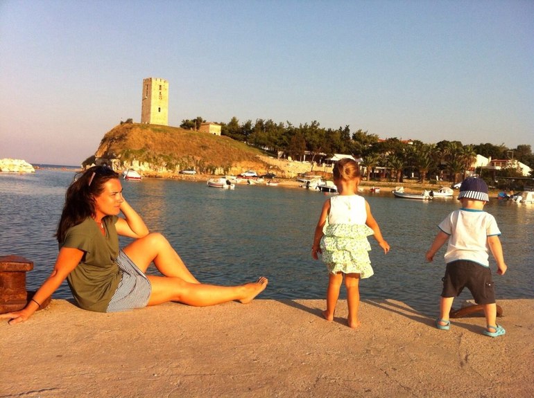 Пора на море! .. взяли свои игрушки и пошли. Лежаки не надо забивать заранее, просто расположились и отдыхаем. Платим только за напитки и снеки.. обедать не хочется, потому что завтрак был поздний и сытный. На пляже едим мороженое, орешки, пьем холодный кофе фраппе со льдом, лежим и наблюдаем как папа играет с ребенком, делаем фотки, можно поспать немного. Маленькие детки спят на пляже спокойно. И вот когда все бока подрумянились и купаться уже не хочется идем домой, переодеваемся на прогулку и ужин. Прогуляться можно по набережной в любой ресторан или таверну. Можно поехать в соседнюю деревню через 3 км и там погулять и поужинать. Можно поехать в детский развлекательный центр, там детки играют с аниматорами, или в родителями вместе.. и поужинать и там. Домой приезжаете уставшие, но счастливые!!)))) Сладких снов!!..