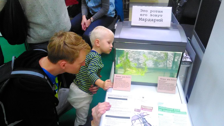 Ваши отзывыВ эти выходные в Москве и не только проходила прекрасная выставка "наука0+". Так как наш папа обожает научные статьи и читает их вместо сказок на ночь сыну с самого его рождения, то не пойти мы конечно не могли)) в Москве выставка проходила аж на трех площадках, но как мы поняли по расписанию самая насыщенная для дошкольников была в Экспо-центре. Между всеми площадками по расписанию курсировал бесплатный автобус, так что можно наверное за день побывать везде. Лично меня очень приятно удивила заинтересованность москвичей и не только наукой, толпы начинались уже в метро. Весьма разновозрастных толпа, но большинство все таки родители со школьниками и студенты первых курсов, но были и такие как мы с детками в колясках. Для первого визита мы сходили очень неплохо, надеюсь что такие мероприятия будут поводится не один год. Провели на выставке часа два, но больше и не надо, наш двухлетка и так устал, даже попеременно катаясь у нас на шее))