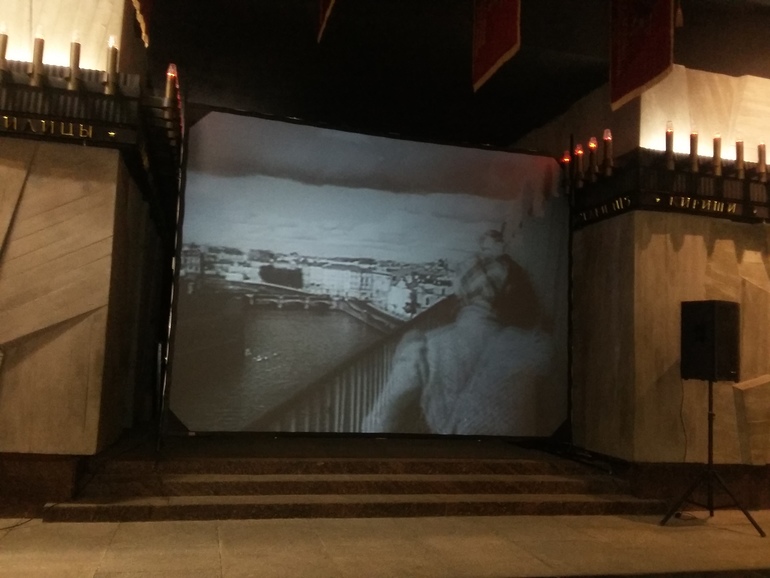 И еще там на большом экране показывают кинохронику военных лет и фильм про блокаду: