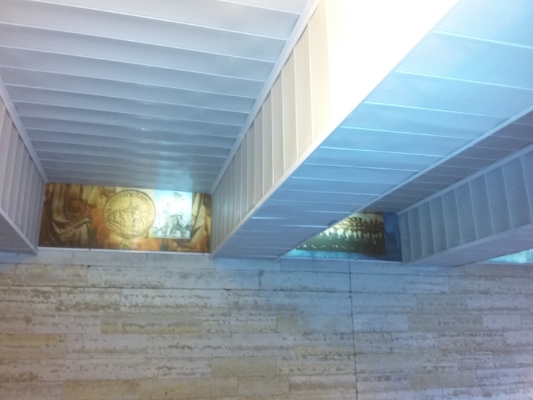 Уже в подземном переходе обратила внимание на тематические фотографии под потолком: