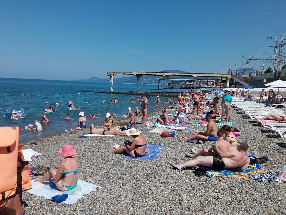 Людей, для пика сезона , сравнительно немного, можно без проблем устроиться на пляже.