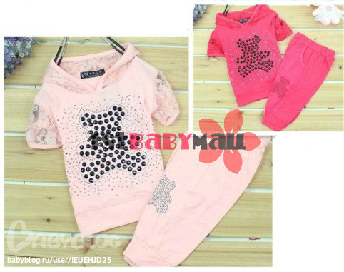 Костюм с капюшоном и коротким рукавом - (футболка + брюки) - 550р