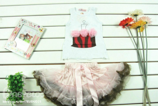 Комплект маечка + пышная юбка пачка. Цвет : розовый с коричневым.