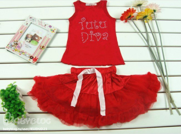 Комплект маечка+ пышная юбка пачка. Цвет : красный .