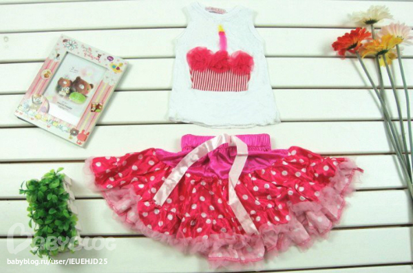 Комплект маечка+ пышная юбка пачка. Цвет : розовый - фуксия.