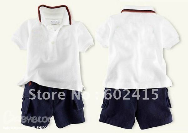 Поло белое \ шорты тёмно-синие с кармашками по бокам.