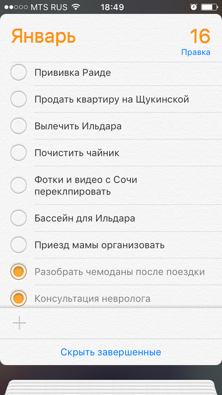9) текущий список дел для вычеркивания.