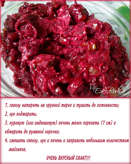 Лётная книга рецептовНастоящего названия не знаю. Этот салат попробовала впервые у свекрови (на тот момент будущей). Потрясающе вкусно, при том, что к свекле я равнодушна, а печень не люблю. Но это - ЧТО-ТО!