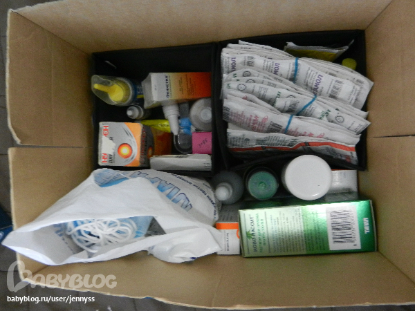 дальше идет аптечка (в коробке из-под бумаги))) (было - стало - выкинула)